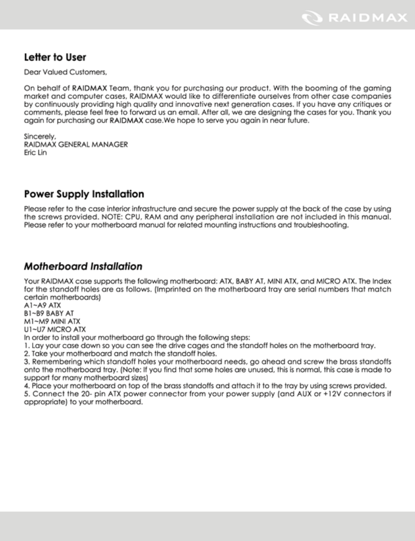 Raidmax SAGITTARIUS-ATX-WB Datenblatt Seite 2